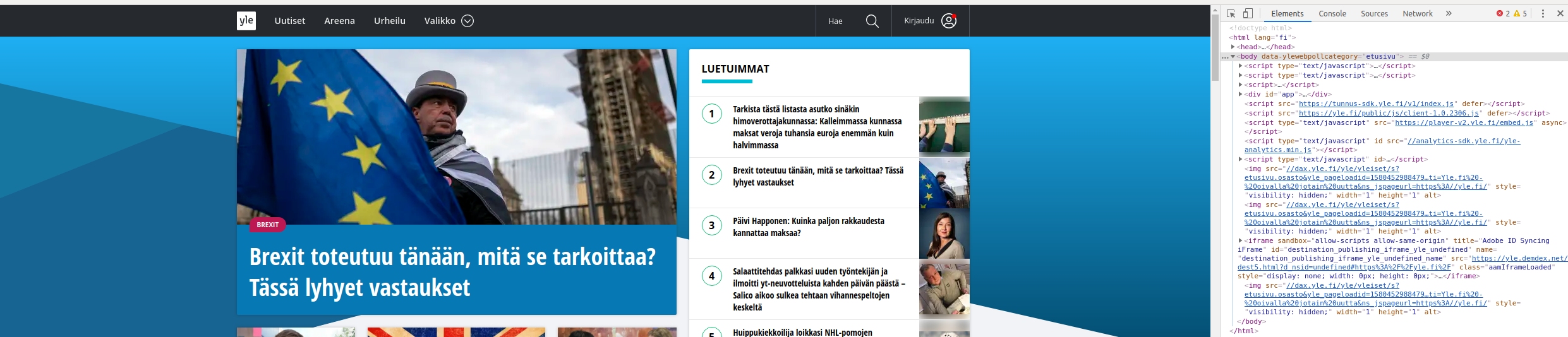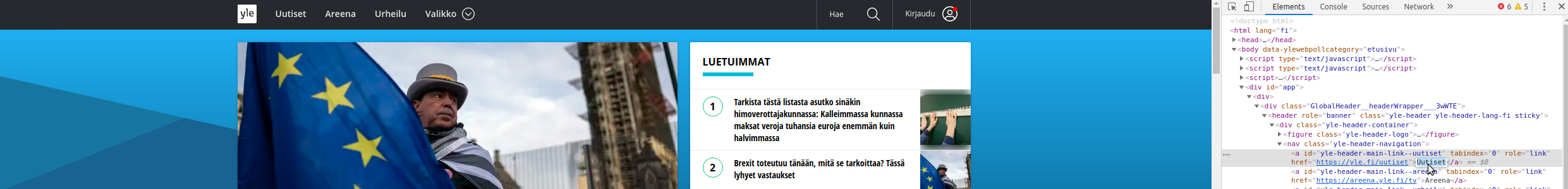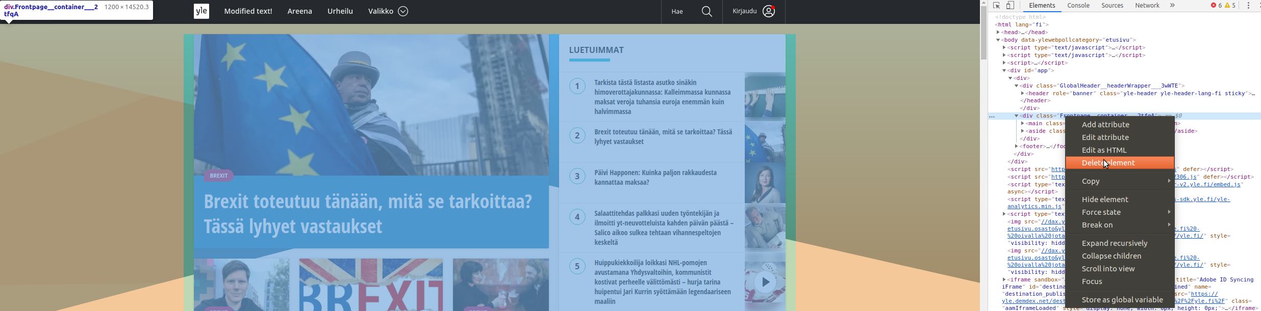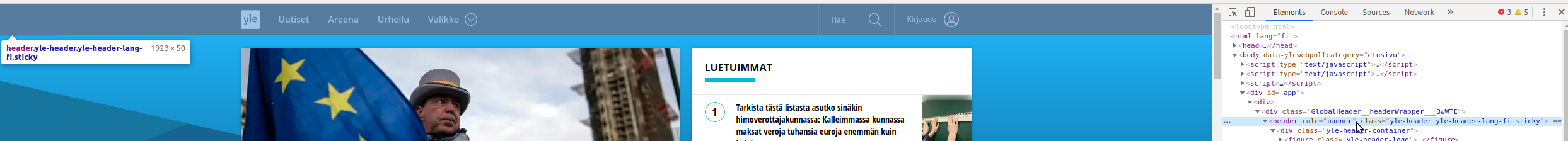 Hovering over an element in developer tools highlights it on the page.