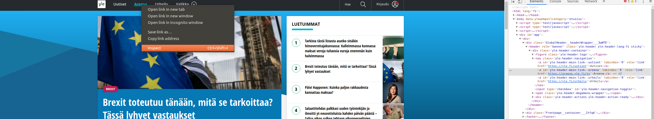 You can also select any element by right clicking and selecting Inspect.